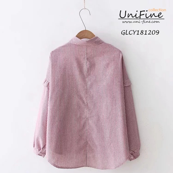 Áo sơ mi kẻ sọc nhuyễn thêu hình cá