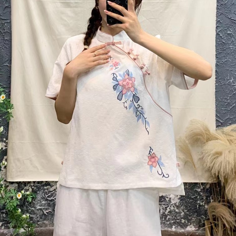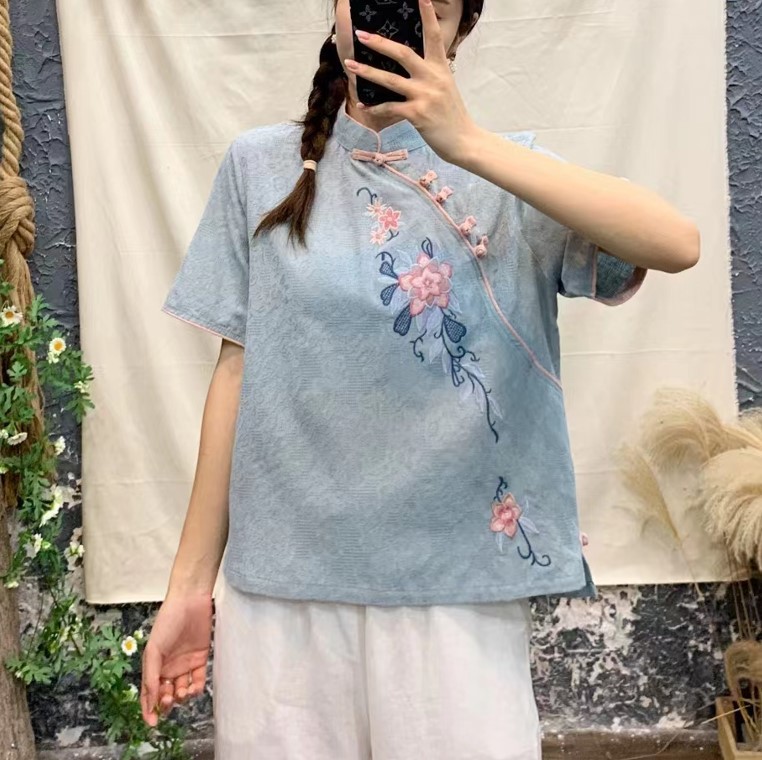 Áo trung hoa nữ tay lửng có thêu hoa AA3105