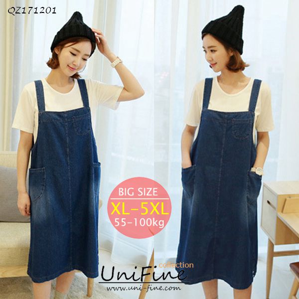 Yếm váy jean nữ trơn có túi có size cho người hơn 60,70,80kg